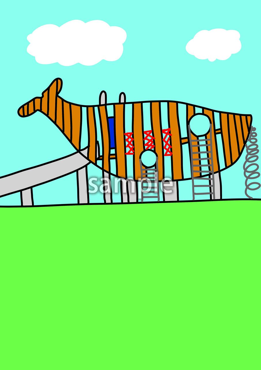 クジラ公園のイラストデータです。 JPEG形式 画像サイズ 2480×3508 px