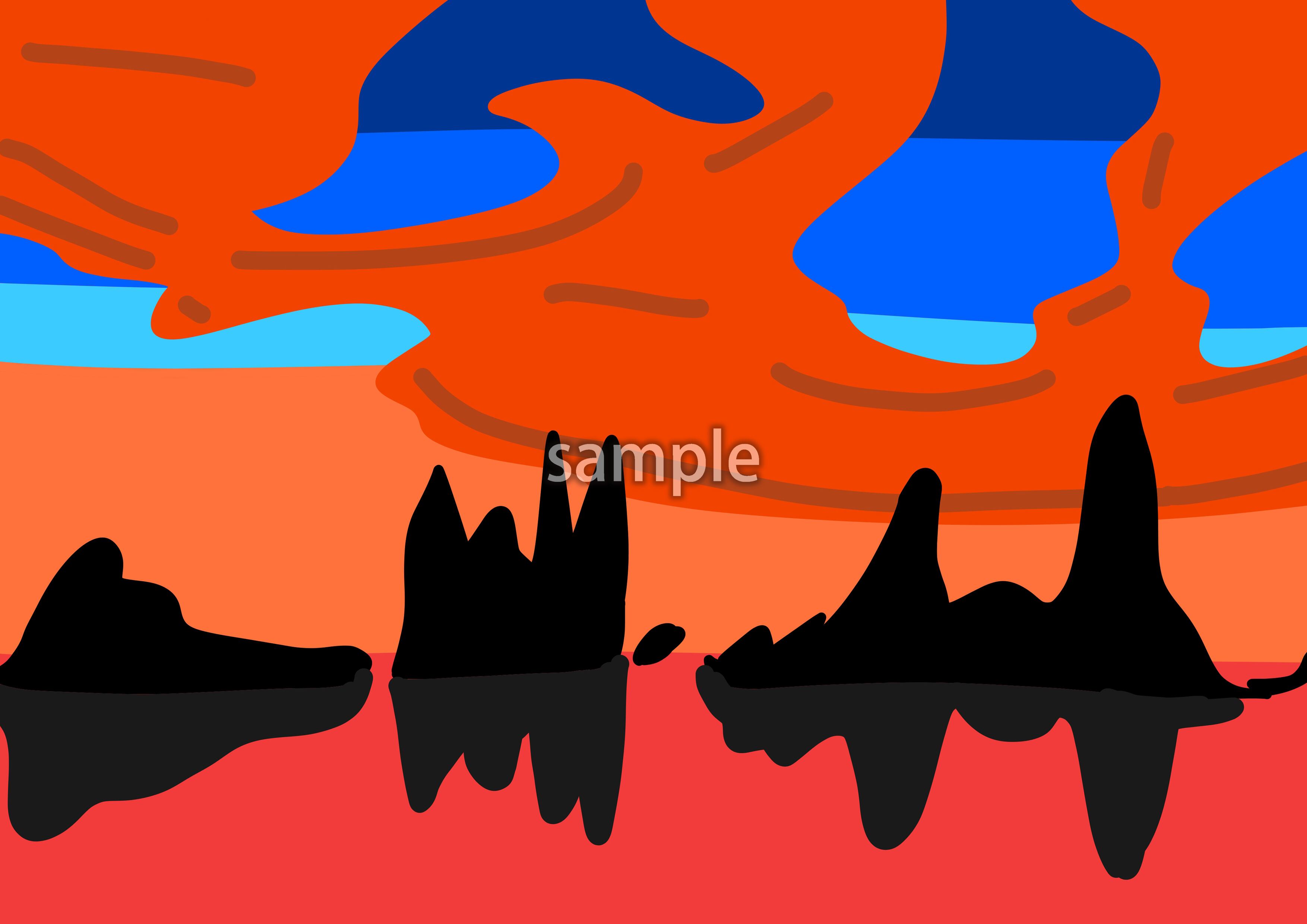 「夕焼けの橋杭岩」のイラストデータになります。 JPEG形式 画像サイズ 3508×2480 px 画像解像度 350dpi