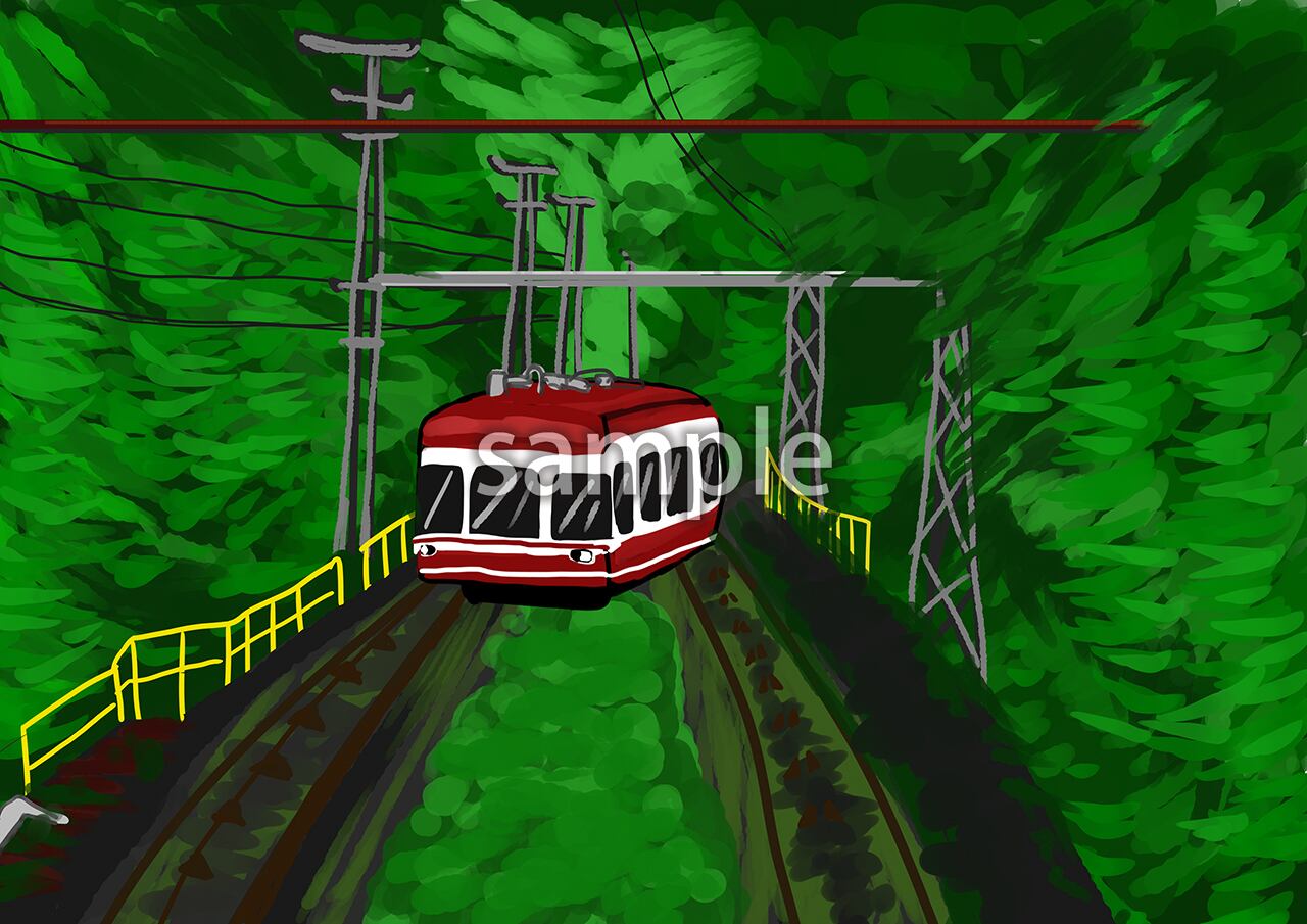 高野山3代目ケーブルカーのイラストデータになります。 JPEG形式 サイズ 3508×2480px 画像解像度350dpi