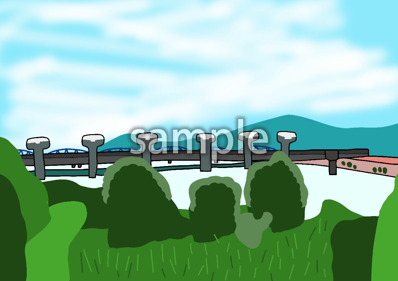 紀の川大堰のイラストデータになります。 JPEG形式 サイズ 4091×2892px 画像解像度350dpi