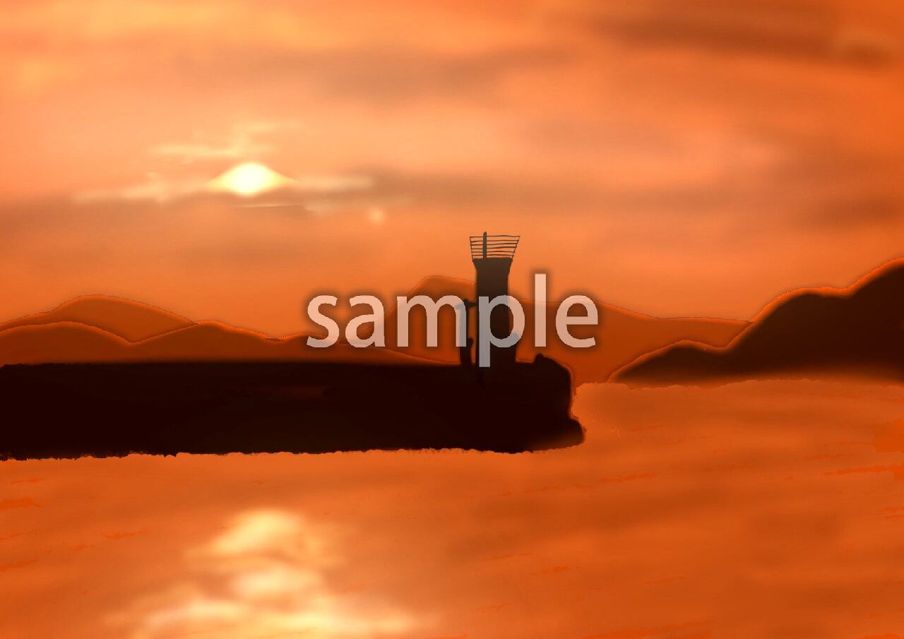 友ヶ島へ沈む夕日のイラストデータになります。 JPEG形式 サイズ 1754×1150px 画像解像度96dpi